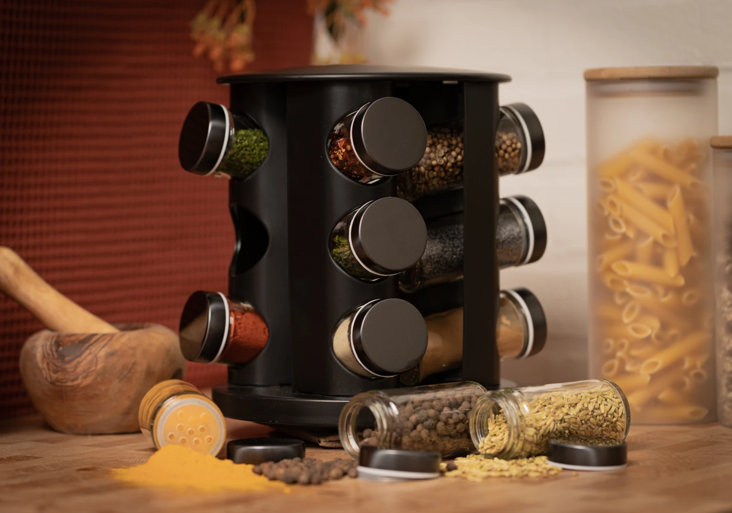 Wil je meer ruimte in de keuken creΓ«ren en de keuken organiseren? Dan is de Blackwell Kruidenrek Zwart 12-Delig ideaal voor jou. Gebruik dit kruidenrek om eenvoudig je specerijen en kruiden in op te bergen, dit ziet er niet alleen stijlvol uit in jouw keuken, maar is ook ruimte besparend. Het Blackwell Kruidenrek Zwart 12-Delig biedt ruimte voor 12 verschillende kruiden. Je kan alle kruiden en specerijen gemakkelijk pakken doordat het kruidenrek draaibaar is.