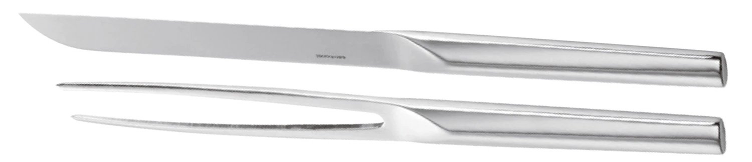 Eenvoudig en snel vlees snijden? Met een trancheerset hou je het vlees op zijn plaats, terwijl je gemakkelijk plakjes afsnijdt. Deze Sambonet trancheerset bestaat uit een mes en vork, gemaakt van roestvast staal. De luxe uitstraling matcht perfect als aanvulling op het Sambonet bestek.